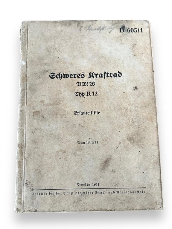 This original BMW R12 Spare Parts List is a must-have for collectors and restorers of WWII motorcycles. Dated 1941, it provides detailed information on the parts of the iconic BMW R12. This document is in excellent condition, with all pages.